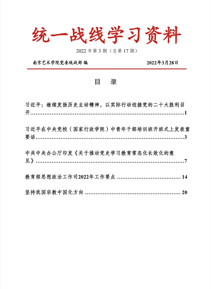 南艺统一战线学习资料 2022年第3期(总第17期)