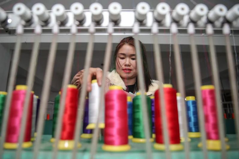 30多年来,统一战线发挥人才荟萃、智力密集、联系广泛的优势,全方位、立体化、多层次参与贵州省毕节试验区建设,助推打赢脱贫攻坚战和全面建成小康社会。图为毕节市“绣娘”在统一战线帮扶成立的刺绣加工车间内工作。中央统战部供图