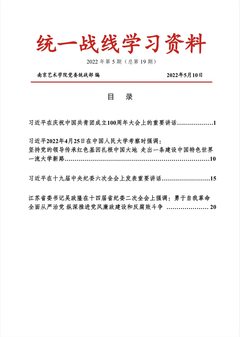 南艺统一战线学习资料 2022年第5期(总第19期)