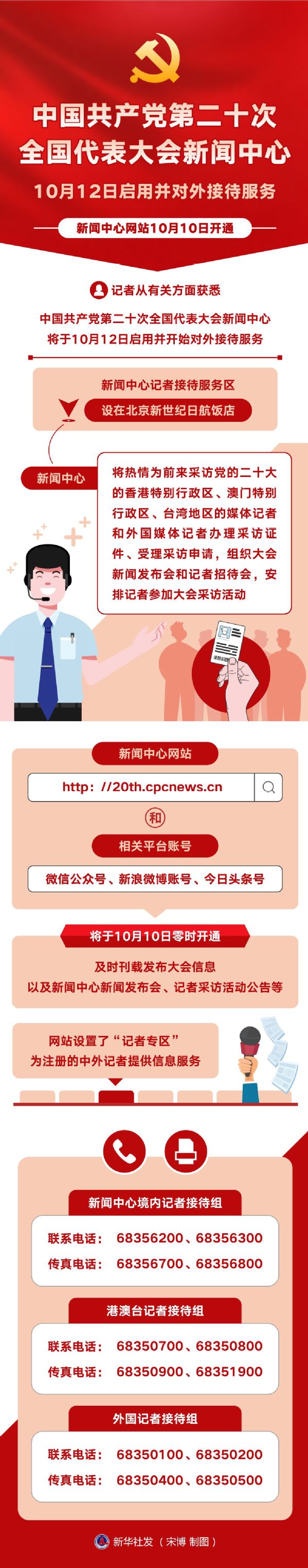 图表丨中国共产党第二十次全国代表大会新闻中心10月12日启用并对外接待服务