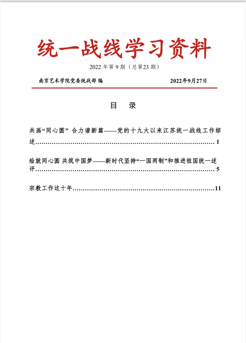 统一战线学习资料 2022 年第 9 期(总第 23 期)