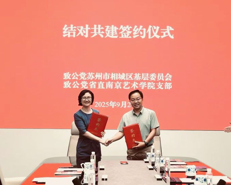 在南京艺术学院苏州研究院,严宝平和相矫雯代表双方基层组织签订合作共建协议。以“议艺科融合、话数智发展”为主题,双方商定未来将在艺术与科技融合、人工智能创意人才培养、多方联合服务地方文化事业发展、合作共建画好统战同心圆四个方面,进入深入探讨与合作,以南艺苏州研究院为阵地,推动和深化合作交流,立足相城、服务苏州。