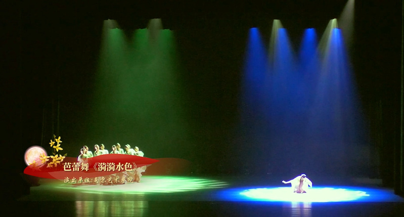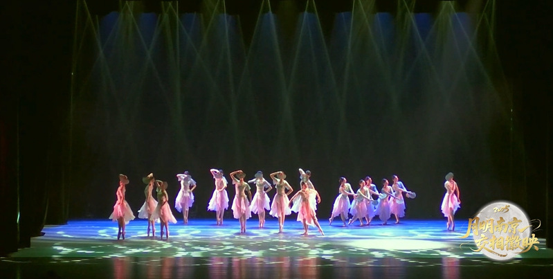 南艺舞蹈学院学生演出的原创芭蕾舞《漪漪水色》为晚会带来了流光溢彩的视觉盛宴。《漪漪水色》由舞蹈学院教师王佳维、于嘉奇、易琦丽共同编导,舞蹈学院院长、欧美同学会副会长许薇、教师于嘉奇指导,2022级、2023级舞蹈表演专业学生共同演绎,展现了深厚典雅的东方审美意趣,将南艺学子的艺术成果献给了全球观众。作品以“江南采莲少女”为原型,立足江南水乡的自然美学,融入“涟漪”意象,展现诗意日常与柔美意境,融合芭蕾结构语言、中国古典舞韵律与江南民间舞风格,描绘少女们在荷塘中劳作、嬉戏、闲憩的生活图景。作品通过芭蕾语汇的“中国化”探索,构建芭蕾舞在中国文化语境中的艺术表达,以其一缕灵动的清风与一抹高雅的月光为海内外同胞献上最真挚的祝福。