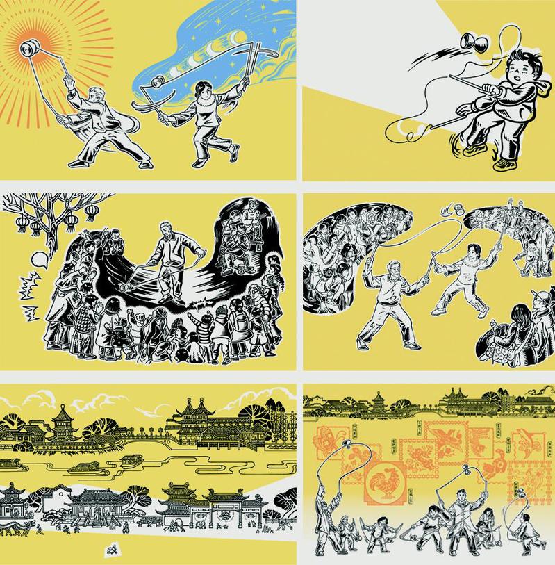 抖空竹非遗系列插画《空竹缘》 美术与书法学院 唐彦