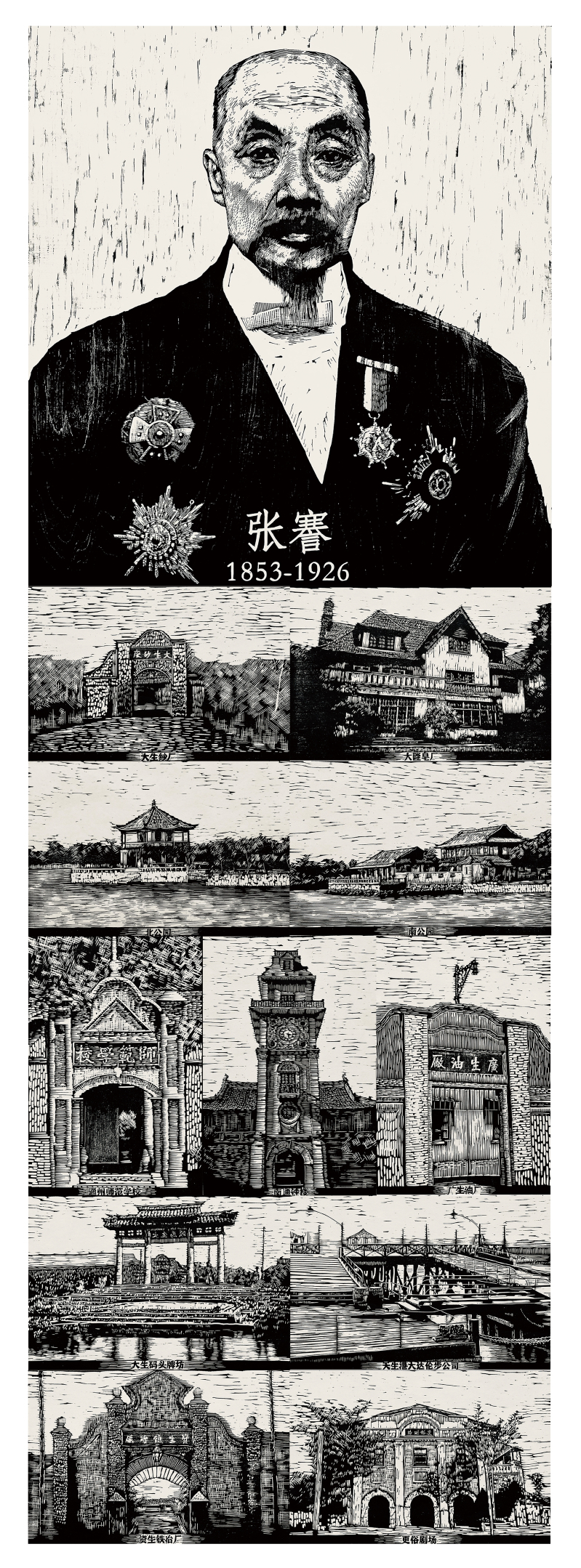 作品简介:作品以雕版印刷技艺雕版、刷印,展现中国实业家张謇为民族工业和社会发展作出的贡献