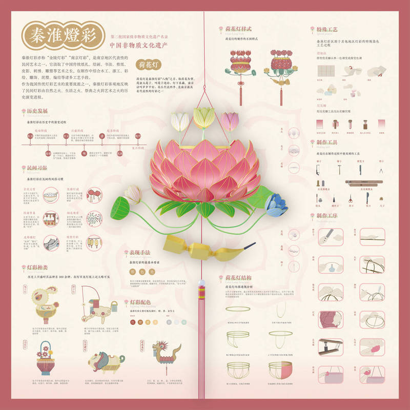 南艺设计学院师悦团队设计作品《灯彩扩展(秦淮灯彩)等》可视化设计节选。